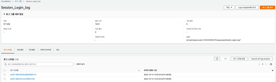 로그를 남기기 위해 로그그룹 하나를 생성했다.