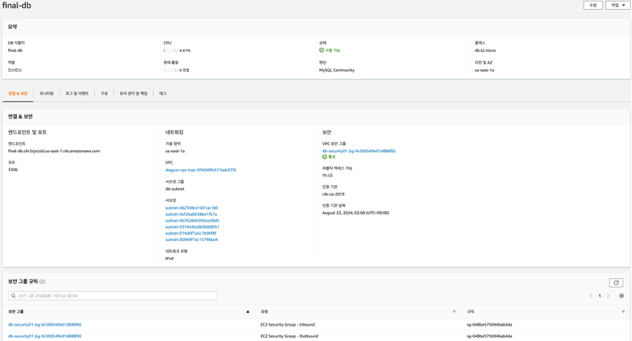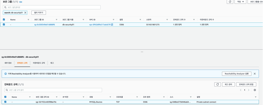 - RDS 보안 그룹을 서브넷으로 지정하여 지정된 서브넷이 아닌 경우 접근 할 수 없다는 장점이 있다. -> 정보의 기밀성을 확보