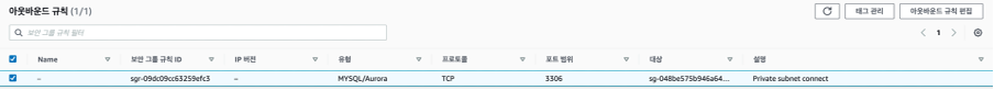 RDS의 경우 3306포트만을 열어주었고, Private Subnet을 대상으로 지정하여 그 외에서는 들어오지 못하게 설정했다.