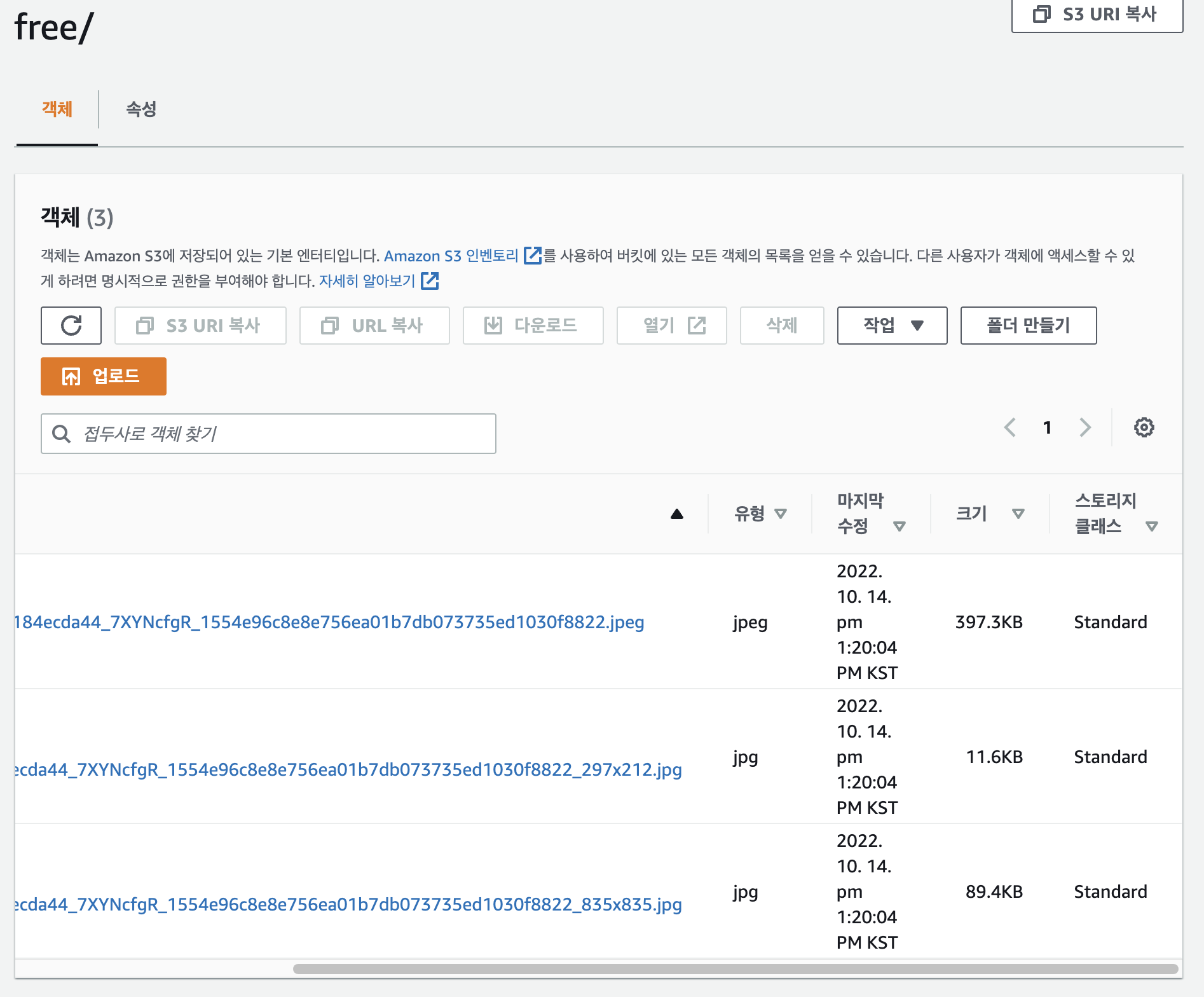 2. 게시물 작성 -> 버킷 확인 -> 업로드 잘 됨